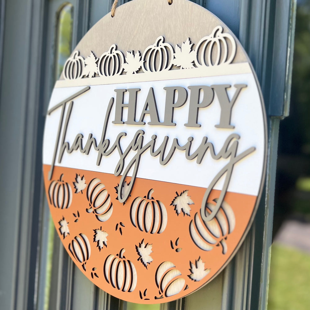 Welcome the holiday season with our Thanksgiving Front Door Hanger! Made of durable wood, this festive hanger adds the perfect touch to your entryway.